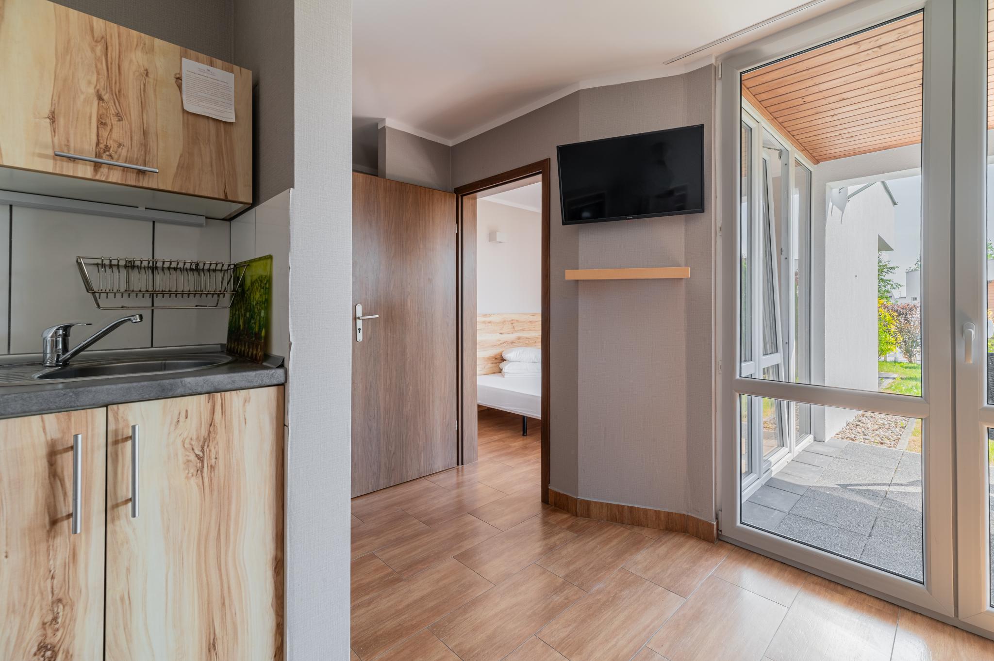 Na wyposażeniu każdego z nich znajdą Państwo: lodówkę, mikrofalówkę, płytę grzewczą, czajnik elektryczny, telewizor 32 cale LCD, klimatyzator, rozkładana suszarka na pranie, parawan. Łazienka wyposażona w dużą, wygodną kabinę prysznicową. Ręczniki łazienkowe i kąpielowe we własnym zakresie.